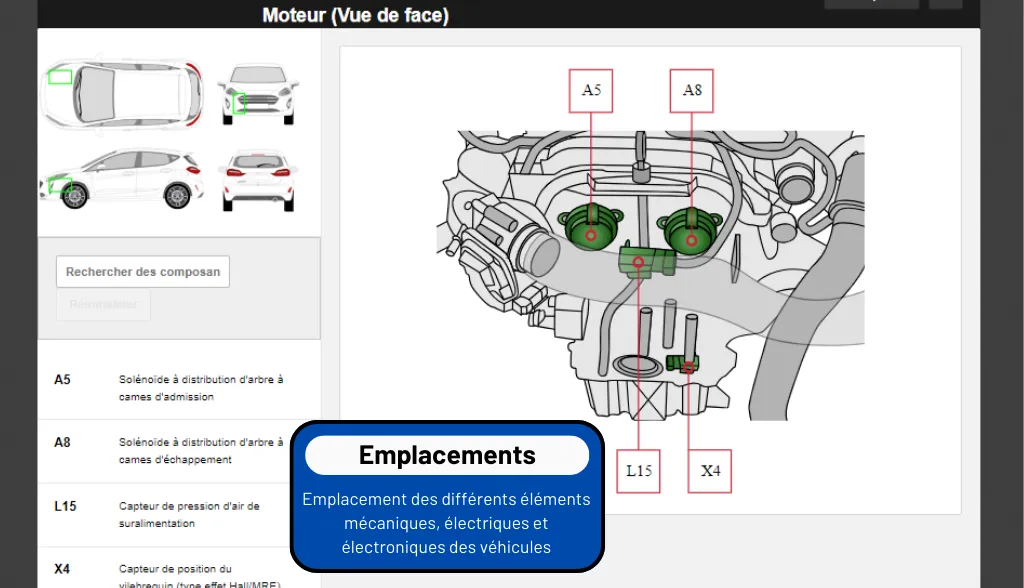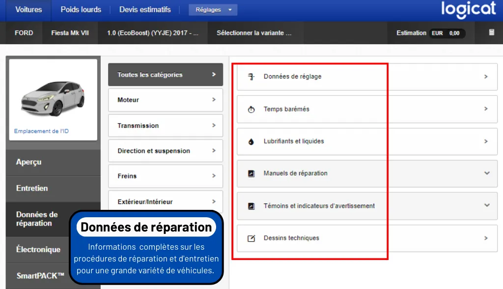 HaynesPro WorkshopData™ Tech est la base, offrant des informations détaillées sur l’identification, la réparation et l’entretien des véhicules. Ce module inclut des données d’identification, des manuels de réparation, des informations sur les lubrifiants, les réglages et des dessins techniques.